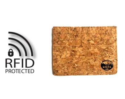 The KORC card holder is a great alternative to the standard leather wallet. At less than 1/4 of an inch thick, this is one of the thinnest wallets on the market right now. It is also amazingly lightweight at just 0.6 ounces! The wallet has slots for 3 credit cards, a middle pocket for additional cards and cash, and a clear pocket for your ID or Driver's License. With industry leading built-in RFID-blocking material, you'll never have to worry about identity thieves stealing your personal information. Cork makes an excellent leather alternative as it is smooth and soft, yet extremely durable! No animals were harmed in the making of this wallet!
