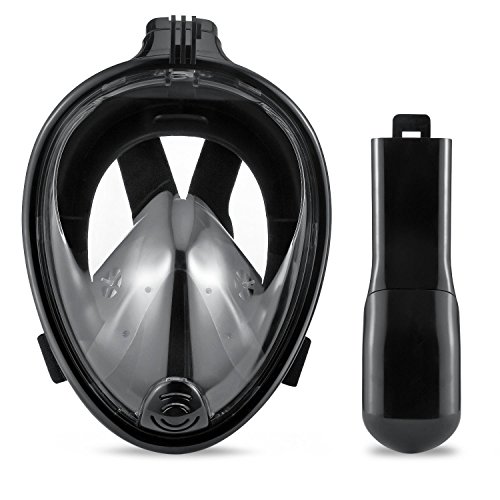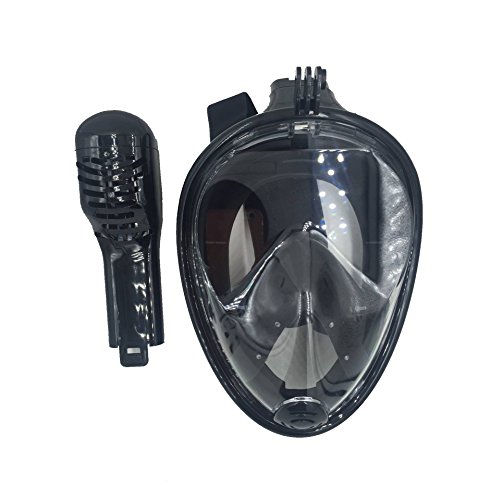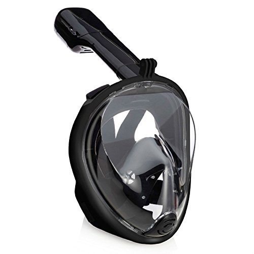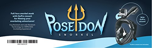 Introducing the new innovative POSEIDON 180° Full Face Snorkeling Mask! LOOKS COOL AND WORKS EVEN BETTER! - Fits most teens and adults (See Sizing Chart For Details)Do you find traditional Snorkeling uncomfortable?Does the mouthpiece style breathing tube leave you with a bad rubbery taste?Have you ever gagged because of that mouthpiece style breathing tube, or have accidentally ingested salt water through it?Do you find yourself constantly turning your head side to side trying to see more because a traditional mask / goggles does not allow you to see through your peripherals?If you are like me and most other people out there you probably answered "YES" to all of those above questions. WE HAVE THE SOLUTION FOR YOU!BREATHE BETTER! - No mouthpiece, no gag reflex! Breathing chamber and top mounted breathing tube allows you to breathe through your mouth and/or nose naturally as you would on land! Spend less time worrying about breathing techniques and MORE time ENJOYING your snorkeling experience!SEE MORE! - 180° FULL FACE PANORAMIC ROUND LENS DESIGN - Lets you see more out of your peripherals and gives you a more natural view underwater. No more tunnel vision goggles!NO MORE GAGGING OR ACCIDENTALLY INGESTING WATER! - Our top mounted breathing tube seals up when you dive under water and prevents water from getting inside your mask, then automatically opens up again when you surface. Allowing you to dive and surface freely without worry of ingesting salt water!RECORD YOUR GODLY SNORKELING ADVENTURES! - Includes a GoPro mount that lets you attach a GoPro Action Camera with ease so you can record all your awesome snorkeling adventures!NO MORE FOGGY VISION! - Anti-Fog Technology allows you to snorkel longer without having to constantly wipe away the fog from your goggles!Why wait? Click "BUY NOW!" and be a GOD OF THE WATERS today!