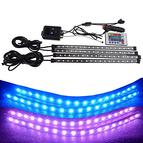 - Package Contents: 4 x RGB LED Sound Activated Car Lights, 1 x music controller, 1 x remote