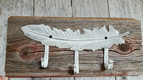 Vintage Feather with 3 coat hooks beautifully mounted onto reclaimed barn wood adds vintage charm to any room. Angelic Reminders are daily feel good from AngelArmyDecor.com