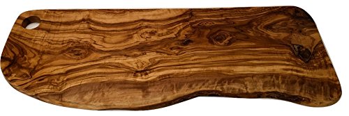 Whether you're looking for an essential piece of kitchenware to prepare meals or a beautiful accent piece, olive wood cutting boards are a unique and timeless addition to the heart of your home. Olive trees grow fruit for centuries before ceasing to produce, which makes them an iconic symbol of health, beauty, and the richness of food. Once they no longer bear fruit, the ancient trees can now live on as an heirloom piece. Olive wood is naturally dense, which means it won't harbor germs in porous nooks and crannies and will be suitable for preparing food for much longer than boards made using other types of wood. Each piece is hand cut and polished to display the intricate marble patterns that olive wood is known for. Our boards are cut straight on three sides with one side left rough, which means their uses go far beyond just chopping. The boards are excellent serving dishes for appetizers or charcuterie, and add a rustic decorative touch when displayed on a counter or tabletop.