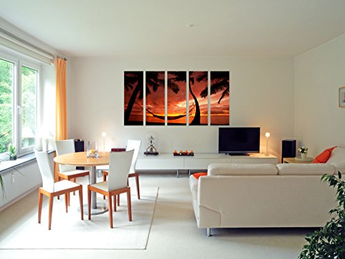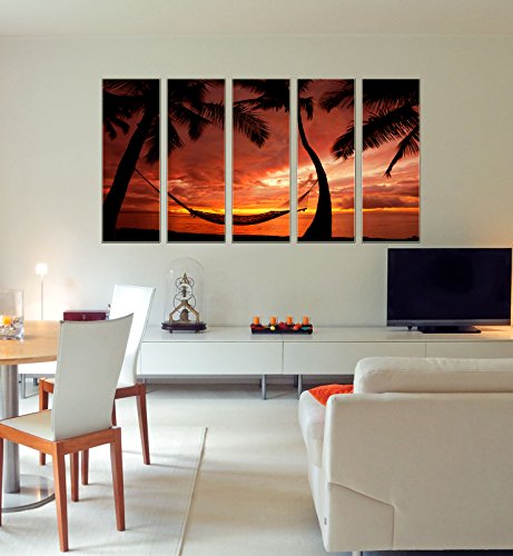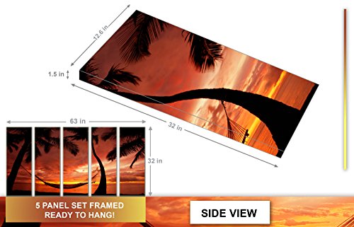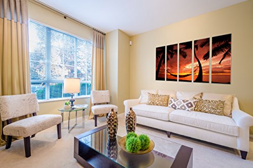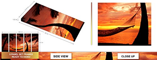 Canvas Print Design of Sunset Seascape - Framed and Ready to Hang. Introduction: Our framed canvas print art work is first printed at high resolution on quality thick 100% cotton canvas. The canvas is then stretched professionally over sturdy wooden stretcher frames. The image wraps around the sides resulting in a top quality interior decor art work. Benefits: This design comes already framed and ready to hang. Each panel has a wide hook already attached for easy hanging. Our best price guarantee and 30 day money back guarantee gives you assurance of a quality product at an affordable price. Well packed and dispatched within 1 day via courier. Proof: Check our store's reviews which currently show top performance in terms of product quality and on time delivery. Also check out the positive video and text reviews from several of Amazon's top 500 reviewers. Buy with confidence. Bonus: A free bonus on request is an e-book of interior design tips and free postage for orders of 2 or more. This design will be a lasting and well valued gift for home or office décor. Click on the above yellow "Add to Cart" icon for easy check out and fast delivery. Buy this exceptional interior décor artwork for great visual impact and talking point.