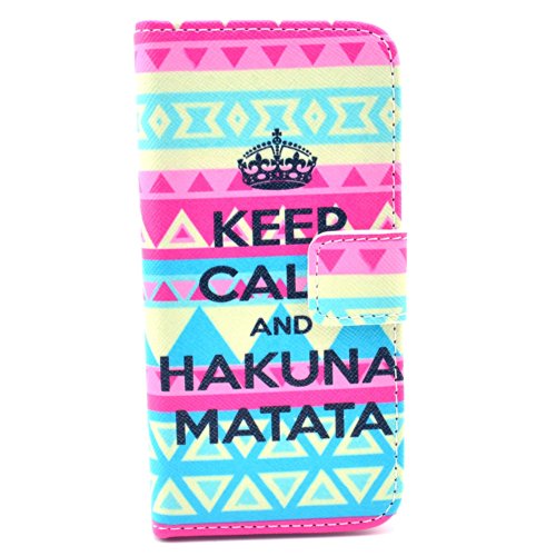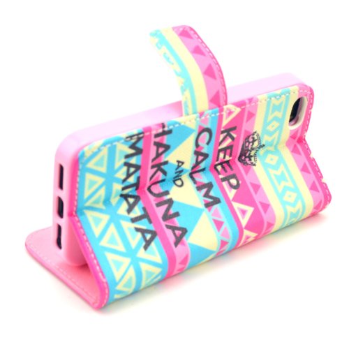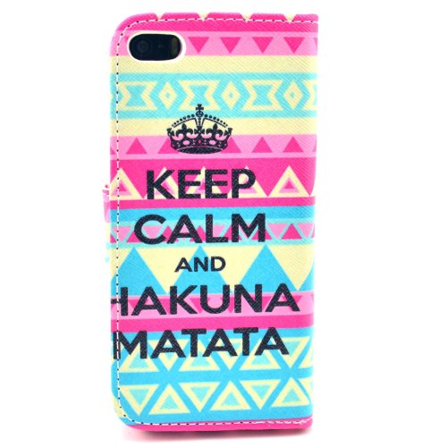 Material: Quality PU Leather Note: Accessories ONLY, device NOT included Package: 1 x Newfangled Aztec Tribal Keep Calm and Hakuna Matata Print PU Leather Wallet Case for iPhone 5 5S 1 x Screen Protectors(Front + Back) 1 x Stylus Pen 1 x Cleaning Cloth