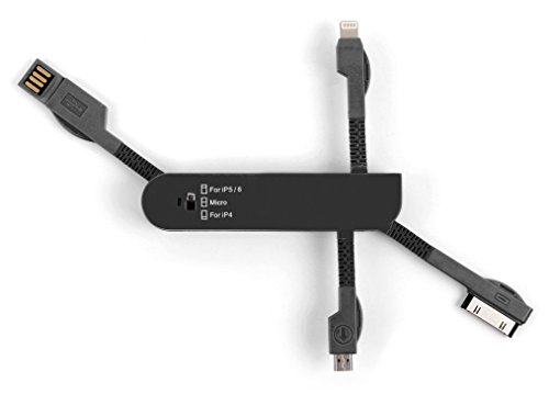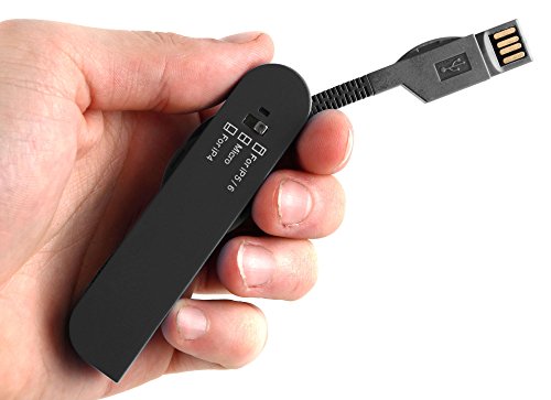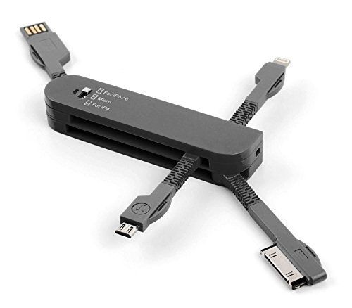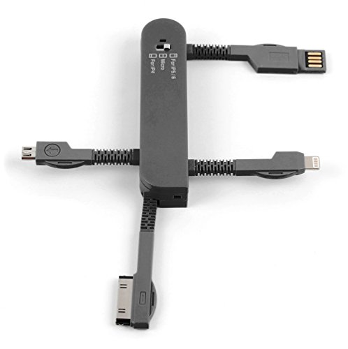 Introducing DURAGADGET's brand new 'Swiss-Army-Knife' style multi USB charger adaptor, finished in a stylish matte black! The ultimate must-have in charging technology, this gadget allows you to charge or transfer data to or from your iPod, iPhone, iPad and any other device with a Micro USB port, all at the same time from one convenient place!Our handy multi charger features three separate connectors:Use the Apple 30 Pin connector for charging your iPod or older models of iPhones, from the original iPhone up to the iPhone 4S.Use the Apple Lightning connector for charging iPads and the newer models of iPhones, from the iPhone 5 to the latest iPhone 6 / 6 Plus.Use the Standard Micro USB connector for charging all other devices including smartphones, tablets, speakers, smartwatches, cameras, etc. with a Micro USB charging port.The charger body features a bright blue LED light to indicate when your device is charging or syncing. Each charger has a flexible, bendy 'arm' and allows you to charge three devices together comfortably when plugged into your PC, tablet or laptop. Made from durable, lightweight hard plastic, this charger will eliminate the need for individual, messy cables - keep all the chargers you need close to hand for quick and easy use in one compact, pocket-sized, must-have gadget!