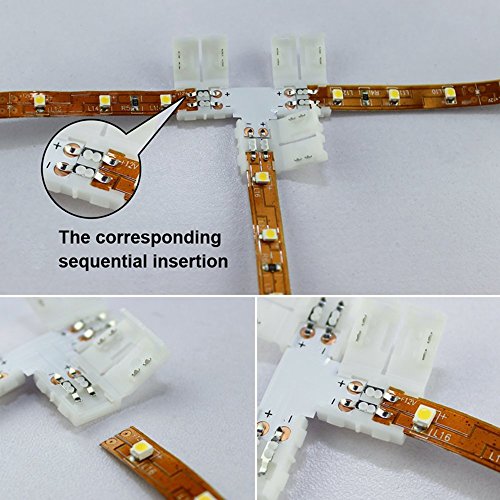 8MM 2Pin L Shape PCB Connectors,Suit for SMD3528 Single Color LED Strip Connection; Installation: *Just Insert The T Shape PCB Board into The Clasp of White Clasp Connectors; *Making Sure to Match The + (Positive) On The PCB Board To The +(Postive) On The White Clasp Connectors;Please Ensure the Two Solder Joints on PCB Board are Clean. *Then Open the White Clasp Connector and Insert the LED light Strip into the Clasp and fix it Under the Prongs; *Making Sure to Match the + (Positive) on The Strip to the +(Postive) on the Clasp. Ensure Clasp is Closed Well to Make a Solid Connection. *****This Link Doesn't include White Clasp Connetor Pacakge Included: 20PCS*8MM 2Pin T Shape PCB Connectors;