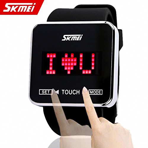 1. 30M waterproof function. LED Light saving power design,super performance. 2. Movement original Japanese quartz movement, long-lasting original battery 3. Material: high-quality titanium case (not fade & not allergic). Case cover: thick hardened mirror glass, German glass high hardness , wear resistance , compressive strength, heat resistance with imported glue, waterproof effects special good. Case back: stainless steel, stainless steel buckle. Strap: German BASF original silicone strap , plus feel the spray oil, soft and comfortable, anti-static dust. Case size: 43 * 43 mm. thickness : 9mm. 4. Product Color: Blue, Black, White, 5. Product Specifications Length:250mm, weight: 80g 6. Animation character setting: Touch "set" for 3 seconds at the date display mode, it will come to animation character setting when the characters flash, touch "mode" to adjust the characters, touch "set" to convert into next character..