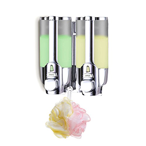 FEATURES: Each dispenser section come with its own wall bracket . Individual modular brackets allow for personal configuration at various heights and distances .Dispenses liquid soap, shampoo lotion, or conditioner . Large liquid capacity chamber , easy to refill ,Clog-free pump design .Shatter-resistant body. Each dispenser holds soap, shampoo, lotion, or conditioner in its large clear reservoir, dispensing it at the press of a button. It's the most beautiful dispenser ever, featuring an inspired joining of design, style, practicality and quality. The liquid is stored in 350ml refillable chambers. With two strokes of the pump, 1.5ml just the right' amount of shampoo, conditioner or liquid soap is dispensed. Handy hooks are perfect for hanging razors and loofas. Perfect for the kitchen, vanity, shower, laundry, garage, pool, office, restaurant, etc. Dispenser allows you to buy your favorite liquids in bulk to save money and reduce plastic consumption, which in turn will reduce the impact of all those empty plastic bottles in our landfill sites. The screws are fixed on the solid wall and will not be tilted. If you don't want to spoil your wall, we're giving a 3M glue protection,Manual to make the installation process effortless and perfect! (included Screw and 3M glue). ?