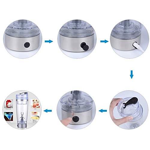 ABOUT US ELECING has been devoting itself to promote customers' life quality by offering better products and services since 2009. 2017 SMART PROTEIN MIXER BOTTLE √Advanced USB rechargeable shaker bottle, more powerful than the battery type, easier to charge. √Effortlessly blend your protein powder into complete liquid. √Perfect mixer for bringing to the gym, nutrition backup carrier.√Portable, ideal travelling companion. √Ergonomics design, suitable for hands of all sizes. CLEAN DIRECTION 1. Add water and shake off the residue from inside and pour out the water. 2. Again, add water, a drop of detergent, put the lid back and press the power button to blend and pour out the water. 3. Keep shaking it for 2 times after you put water and the bottle will be clean. PACKAGE INCLUDES: 1 x Electric Mixer Shaker Bottle 1 x USB cable REST ASSURED TO BUY You will enjoy the best product and service at the lowest price and we offer 100% satisfaction guarantee. If there is any problem, please contact us first and we will send you a replacement or refund. CAUTION: NOT suitable for blending fruits or other similar items.