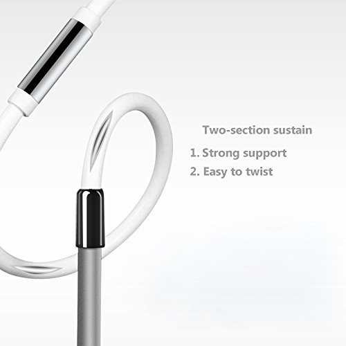 360 Degree Rotating Flexible Gooseneck Rotating Clamp - Adjustable holder to view your device at any angle or orientation Heavy Duty and sturdy Holder Large Suction Base for Stable Mounting without Vibrations, tight and bendy arm, secures your smartphone and other electronic devices tightly to prevent the unit from falling or moving around Perfect for view phone & enjoy music & phone games on bed, desk, car, beside sofa, workout equipment, etc; Compatible for most smart phones. Made of aluminium alloy and ABS+PC, the former is great on support and the latter is gentle to hands while contacting with soft rubber. While assuring your device is held steadily, the chuck silicon has thickened in case of harming the phones and tablets. At the same time, enlarged and thickened the silicon size of stand base, it is better for tight locking, anti-skidding and not harming the desktop. Double-open bracket; 360-degree rotation; thickened silicon against injuries; groove simultaneous for charging or earphone. Double-tube design: the thick one for shaping without dropping; the thin one for easily adjusting the angles. Clip to the phone: 4.7"/12cm - 7.2"/18.3cm Clip to the table: maximum 3.15"/8cm Length of Arm: 47"/120cm Weight limited: 2000g Size limited of phone/tablet: 4" - 10.6" We focus on making customers enjoy our products at a reasonable price. Any questions please contact us, we will answer you within 24 hours.