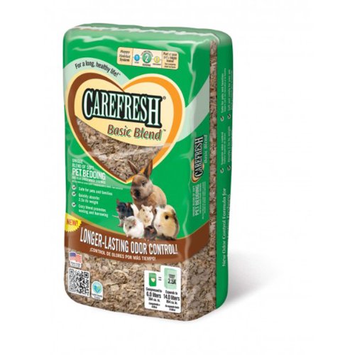 Natural wood shavings plus soft bedding bits is a cozy and absorbent blend for your pets, with better odor control than shavings alone. Care fresh Basic Blend is a blend of 30% Care fresh Natural Soft Bedding and 70% softwood shavings.