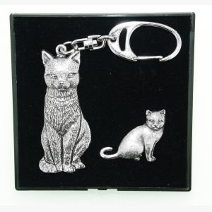 Pewter Keyring and Pin Badge Gift Set-Cats