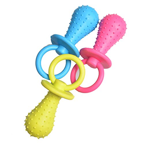 Material: Rubber, provides your pets a soft chewing; Made from non-toxic material, safe for your pet to play. Attract dogs and cats play their interest to meet their achievement. Let pets never be bored. Loneliness better when the owner was not at home. Entertaining colors and textures keep your puppy busy Softer material designed for teething puppies Color by random Size: Length 9.5cm ; Weight:30g/pcs Approx.