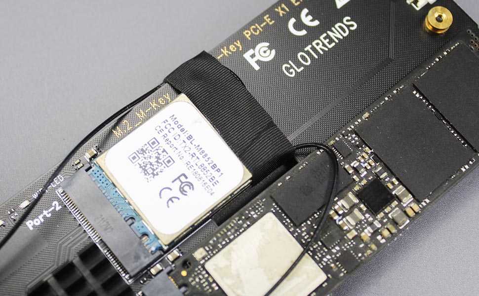 GLOTRENDS WA05 PCIe X1 Adapter for one M.2 Key-E WiFi Module and one M.2 NVMe SSD, 2 in 1 Combo Design