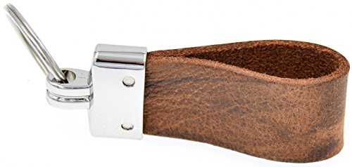 This unisex key ring made of genuine leather and silver clasp is perfect as a key ring for the car key, the apartment key, the office key and all other forms of keys. The key ring has the following dimensions: width: 2.5cm, length: 6.5cm, ring diameter: 2.6cm.
