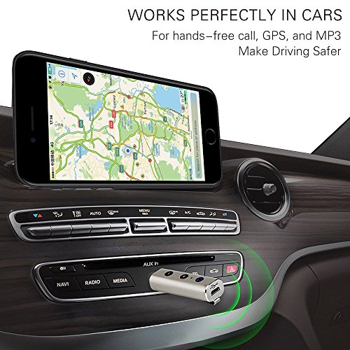 DOUBLE LINKS & WIDE COMPATIBILITY: Portable Bluetooth Receiver can connect two Bluetooth devices at the same time.And it also could compatible with most smartphones and Bluetooth electronics ideal for home or vehicle audio systems and wired headphones (connected with via 3.5mm audio cable/adapter then pair your phone with BT810 to achieve listening music or answering call.)BLUETOOTH 4.2 RECEIVER:Built with Bluetoot4.2/HFP/HSP/A2DP/AVRCP to smart yor life that you can enjoy music and hands-free calling from your smartphone in premium-quality soundMulti-Purpose:Support you to non bluetooth enabled Car AUX Port speaker, 3.5mm port wired Active speakers, 3.5mm wired headset convert to bluetooth enabled; Get rid of complex audio cable connections tangle; Support car hands-free calling for safe driving.Collar Clip Design and Bluetooth 4.2 and Double Links:Bluetooth 4.2, more stable, more fast conection and low power consumption; can connect two bluetooth devices at the same time; Easy to carry, with Collar Clip, let you in fitness, exercise, workout when listen to music, can be clip in the collar or pocket; Get rid of when exercising headset wire swing trouble.Technical Data:1. Bluetooth V4.2+EDR,Further transmission distance: 10m2. Frequency: 2.4GHz3. Limit working voltage: 2.80V-4.20V4. Working temperature: -20°-50°5. Effective distance of Mic.: 0-1m6. 3.5mm stereo audio input7. Micro USB charging port8. Bluetooth Pairing Name: BT810REV9. Working time:up to 8 hours10. Standby time: 90days11. Charging time: 2hours
