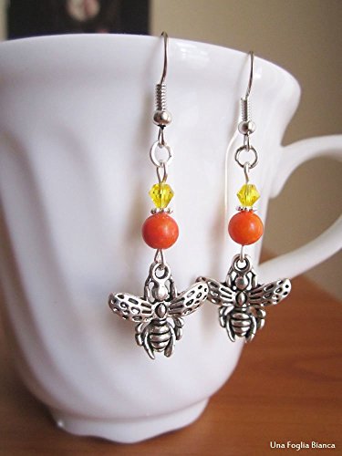 Earrings with bees, jade beads, handmade! For any information, contact me.