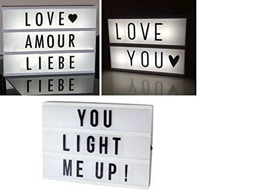 - The perfect ligh box plaque for every home and business. This brilliant battery operated Light Box has a real movie feel to it and allows you to light up your own personal phrase or message.