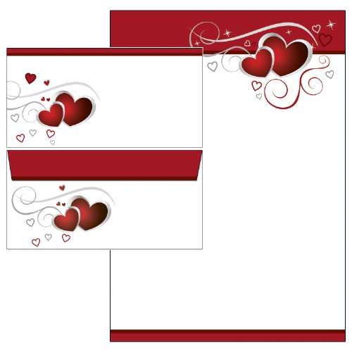 - 25 sheets writing paper design red hearts