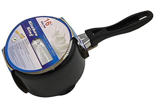 Its been made with fine quality of aluminium for even heat distribution. its really easy to clean and strong wood handle is designed for easy grip and prevent burning the hands. This hard enamel coating provides long term protection against scratches and abrasion while the double coated Teflon non-stick makes it super easy to clean. Suitable for most heat surfaces. The handle is protected strongly with two rivets and guaranteed rust free for life. Its got two sides lips to pour the liquid from any side without spillage. Features: Condition: Brand New with Tags Brand: Kitchen King Style: Non Stick Milk Pan Color: Black Type: Milk Pan Available sizes: 16cm, 18cm, 20cm Capacity: Available sizes 16cm/6inch 18cm/7inch 20cm/8inch Strong stainless steel handle rust free for life Dish wash safe Strong Rivets High quality aluminium material Stay cool handle and easy to grip Suitable for all heat sources excluding induction