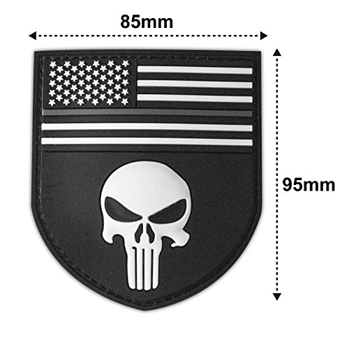 The Punisher Shield Patch is a high-quality PVC patch designed for military, paintball, and airsoft use. Featuring a durable Velcro backing, it ensures secure attachment and long service life while being environmentally friendly.