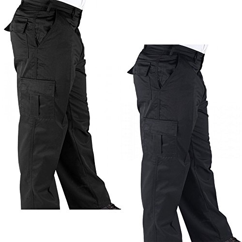 RK Deluxe Cargo Work Trousers Black / Navy (All Sizes) Mens Combat Worker Trade The RK Multi Pocket Cargo Trousers are durable work trousers made for lasting comfort and protection, with multiple pockets, they are ideal for medium industrial occupations. Choose From: - Colour: Black, or Navy Blue - Waist Size: 28 inch to 44 inch - Leg Length: Regular 31 inch to Long 33 inch Features: - Weight 240/260 gsm - 65% Polyester 35% Cotton - Concealed YKK Zip fly with button over - Two side pockets - Two side leg velcro patch pockets - Two back button up pockets - Belt Loop