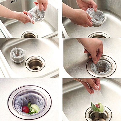 Are you having trouble to clean your sink filter very time ? Can you stand the unpleant smell come from the sink strainer? Do you want to save time on cleaning the sink strainer ? Here is a problem solved situation where you can choose our newly design Disposable Mesh Sink Sewer Filter Bag . 1: We save time for you to clean your sink strainer every time you are having residues in your kitchen area. 2: No more stinks around the kitchen area especially in summer time , effectively blocks all the residues you've created along the way . 3: With highly dense mesh grids ,we guarantee there is no more clogging situation will happen again! Features: 1. Materials: nylon, mesh, good toughness, strong load-bearing, no irritating smell, effectively filtering a variety of food residue. 2. Package included: 100 * Disposable Sink Filter 3. Size:9*9cm 4. Good ductility, effectively prevent even the smallest bit of food and waste.