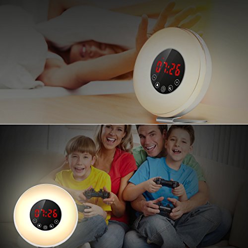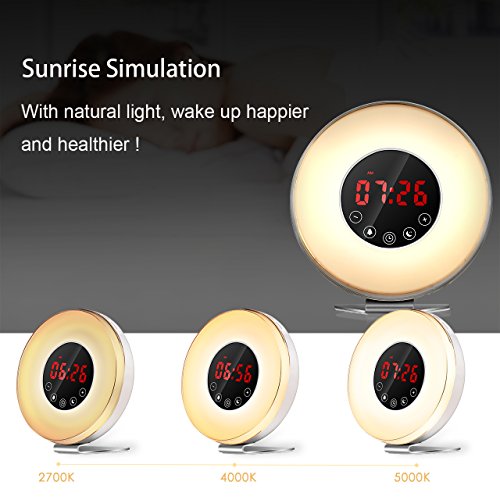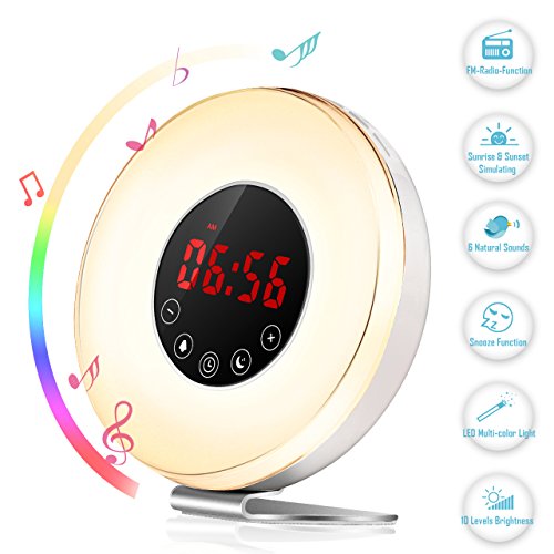 ZILWISE Wake Up Light , Sunrise Alarm Clock with 7 Colors, 6 Nature Sounds, FM Radio and Touch Control, Digital Alarm Clock