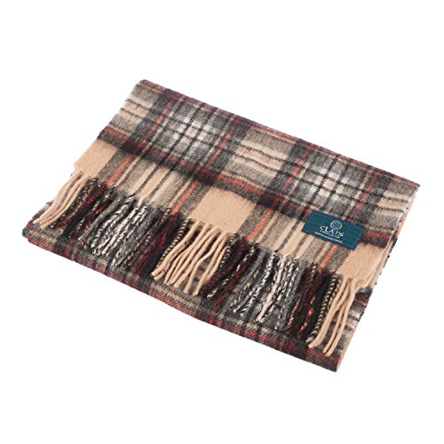 CLANS OF SCOTLAND Lambswool Clan Tartan Scarf. Timeless and traditional, this beautifully crafted tartan scarf is made from pure lambswool. The use of finest material makes it an exquisite garment with an extra-soft finish. The packaging includes a clan history and motto at the back. This scarf is a fantastic souvenir from Scotland either for yourself or your beloved ones.