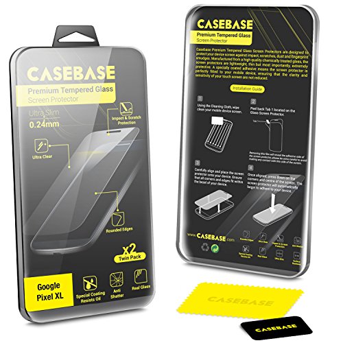 Google Pixel XL Screen Protector - CaseBase Premium Tempered Glass Screen Protector TWIN PACK for Google Pixel XL (Model Smartphone 2016) - 2 in 1