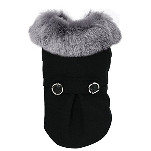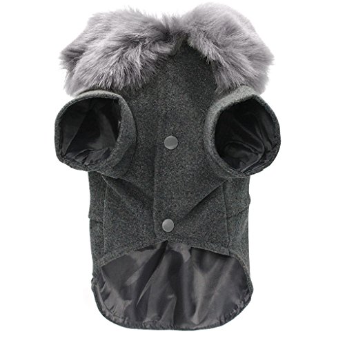 Petcircle Winter Dog Jacket With Woolen Fur Collar Warm Thick Pet Clothes Coat For Small Cat Puppy Gray M