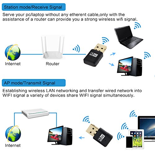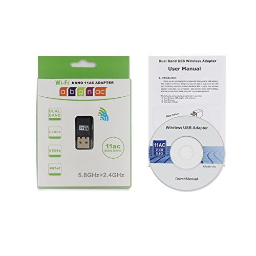 Note: 1. Install the driver from CD first before you insert the WiFi adapter 2. Restart your computer after driver installation 3. If your computer is desktop, we suggest that you'd better insert the WiFi adapter into the back USB port of you PC, that may guarantee the power supply 4. If you can't read the CD software, you can download the driver software here: https://www.dropbox.com/s/trxw52u8gq8eikv/USB%20wifi%20ADAPTER%20%E6%97%A0%E5%A4%A9%E7%BA%BF.rar?dl=0 New experience of enjoying 5.8GHz+2.4GHz dual band wireless technology, it presents less signal interfence while works at 5.8GHz frequency and provids better transmission with its 433Mbps data rate, the unique design brings easy and free wireless digital life. It could keeps a really stable connection all day long. System Configuration Compatible with Mac OS X 10.4-10.11 Compatible with Ubuntu Linux 2.4/2.6 system Windows 2000/XP/Vista/7/8/10 Security Features WFA, WPA, WPA2, WPS2.0,WAPI Packing List: 1 x USB Wireless WIFI adapter 1 x CD 1 x User manual