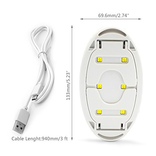 Features 100% Brand new ! Mouse designed, mini and lightweight, easy to carry. With foldable stand, can be places into pockets and wallets. Sunshine effect, non-harmful to eyes, non-blacken, UV LED. Built-in 8pcs double light source LED lamp, which just take 60 seconds to dry the glue. It is low wattage but quick-drying which can shorten your curing time by 30% or overheat than other mini dryers, quick and quiet. With USB interface, 5V input, can be used almost everywhere, especially when you travel or on holiday, even in the car. With timer setting, press one time for setting 45 seconds, long pressing for 60 seconds. Best for travel and business trip, also good for office and school use. Fashionable and durable 50000hrs lifetime, ideal for personal use and best gift for friends. Specifications Material: PVC Quantity of LED: 6 Pcs Max Wattage: 6W Wavelength: 365nm/405nm Shell Color: Pink Delay Time: 45s/60s Voltage: USB 5V Interface: Micro USBPackage Included 1 X LED Nail Lamp 1 X USB Cable
