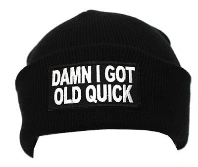 Fat Skeleton Damn I Got Old Quick Double layer Biker embroidered patch beanie