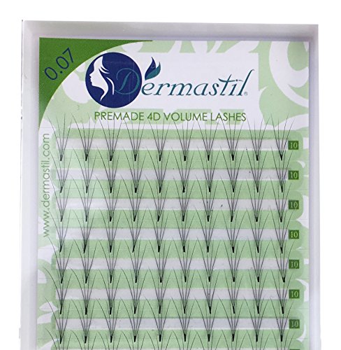 The Dermastil Premade 4D volume lashes are perfect for professional lash extensions. Since each individual set of lashes are seperated and curved from the root, the fixation of a Dermastil Premade 4D volume lash is very simple. Due to the careful queuing of each set of lashes in its packet, fast and clean working is supported. Fewer lashes are needed since each root holds 4 lashes. Less time and lashes are needed for that reason. The construction of these lashes is based on maximum comfort without any irritation to the eye or lashes. Because the Dermastil Premade 4D volume Lashes are very lightweight and smooth a natural feeling of fuller and longer lashes as well as of a high quality look is achieved. Our lashes are unique because of the high quality of the product and its easy handling.