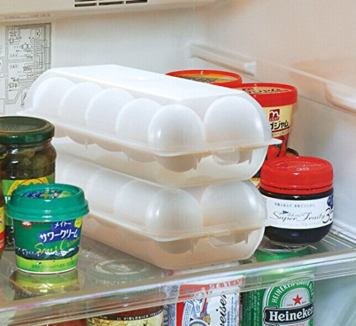 Keep eggs fresh longer without flimsy paper cartons. Don't let a dozen eggs take over your limited fridge space. Store eggs inside this durable polypropylene egg storage container to prevent breakage and waste. Save space by stacking food on top. See-through design lets you see when supply is low. Stackable, space saving storage bins for the fridge, freezer, pantry and more. Helps keep refrigerator organized and clean. Built-in handle for easy removal while cooking.