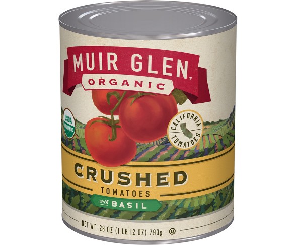 Description Next time spaghetti night rolls around, step up your game with the Muir Glen™ Crushed Tomatoes. These delicious organic tomatoes bring the classic sweet and tangy flavor you love, enhanced with basil for a deeper flavor. Use this as the base to a homemade pasta sauce that the whole family will love.Contains: Does not contain any of the 8 major allergensMay Contain: Does not contain any of the 8 major allergensStore: In a Dry location at Room temperatureDietary Needs: Gluten free, Organic certifiedState of Readiness: IngredientPackage Quantity: 1Pre-package preparation: Fully cookedPackage type: Individual item multi-servingNet weight: 28.0 ouncesExterior container material: MetalCrushed tomatoes come ready to add into any recipeBasil adds an extra twist to your mealCertified organic for a meal you can feel good about Estimated shipping dimensions: 3.93INCH X 4.62INCH X 3.93INCH DPCI : 212-22-0202 UPC : 725342283934 TCIN : 13034215 Estimated shippimg weight: 28.0OUNCE