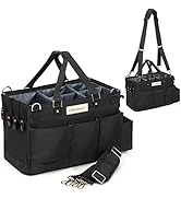The FifthStart Multiuse Cleaning Caddy is a large, beige organizer measuring 15 x 10 x 8 inches, featuring 9 pockets including 5 adjustable inner dividers, and a quick-dry mesh base. Designed for versatile use—from cleaning supplies to beach gear or car essentials—it offers ergonomic carrying options with adjustable waist, shoulder straps, and handle. Constructed from premium materials for durability and easy maintenance, it comes with a 2-year warranty and enjoys a 4.6-star rating from over 3,000 customers.